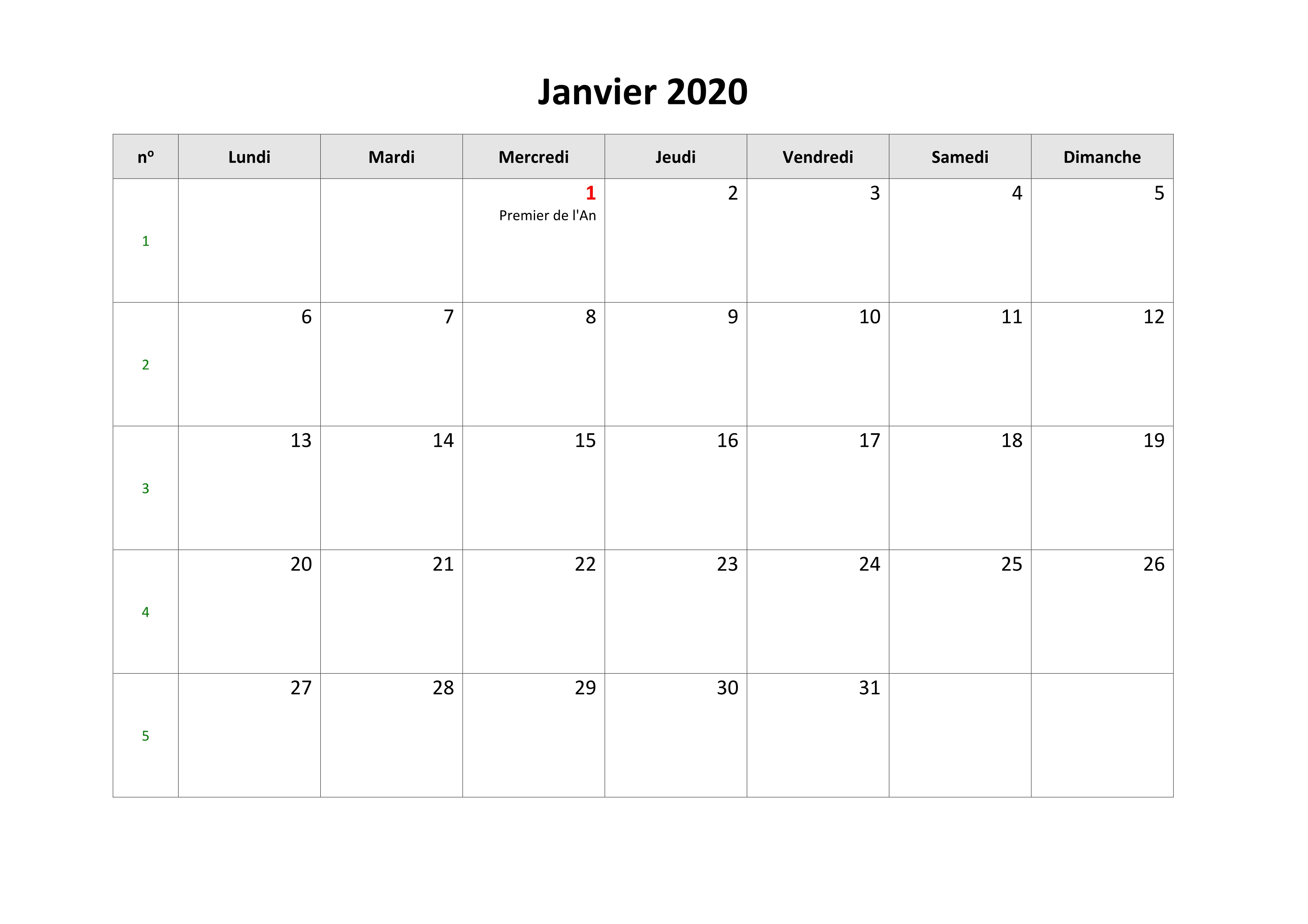 Calendrier 2020 en 2020 calendrier mensuel a imprimer.
